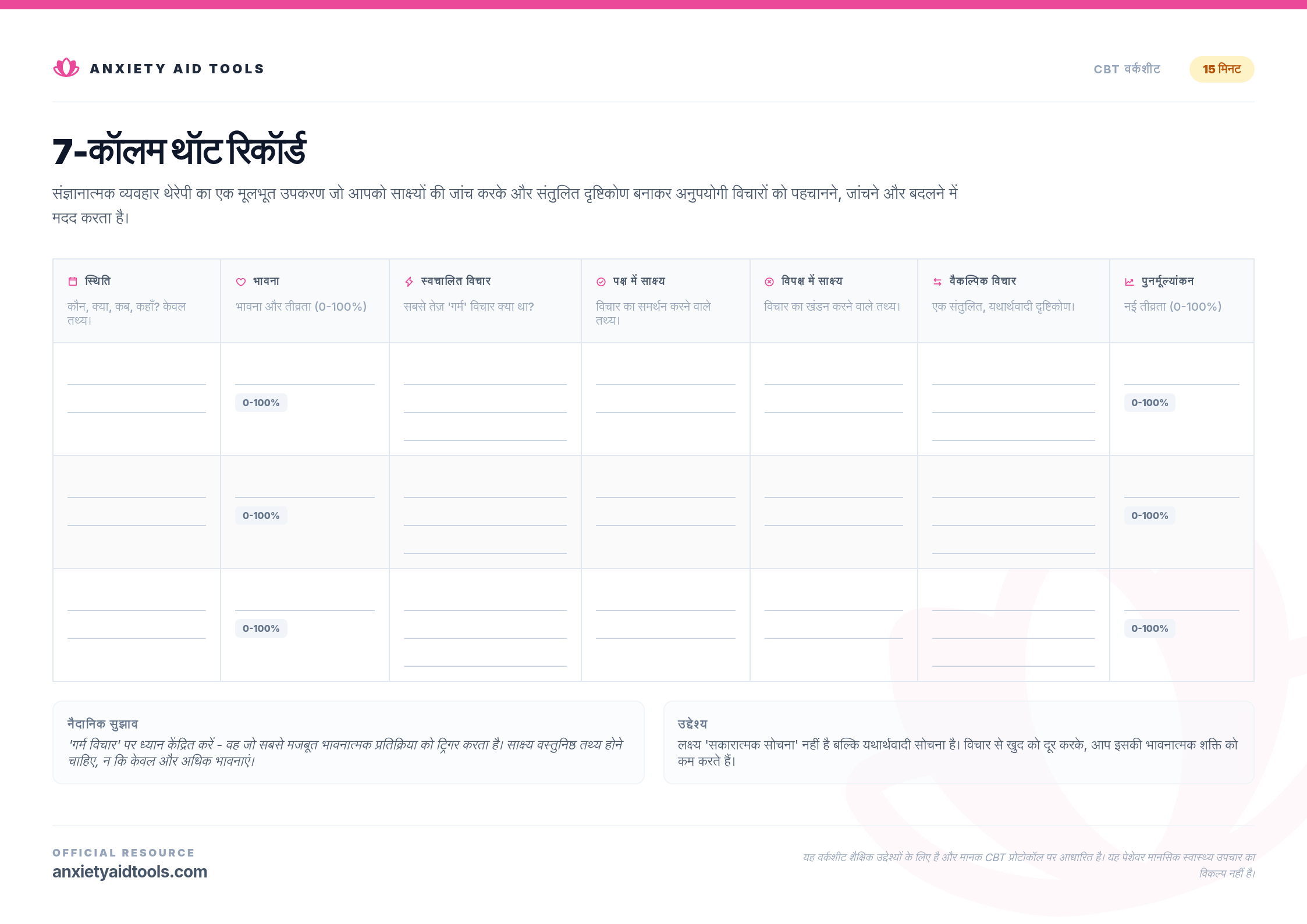 7-कॉलम थॉट रिकॉर्ड संज्ञानात्मक व्यवहार थेरेपी का स्वर्ण मानक है।